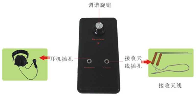 先把發(fā)射天線連接到發(fā)射器對應(yīng)的插孔內(nèi)。把發(fā)射機(jī)上的開關(guān)打開到ON位置來測試指示燈。也可以同時(shí)在發(fā)射天線的旁邊放一個(gè)小型晶體管收音機(jī),把頻率調(diào)到中波段530HZ來測試儀器,打開收音機(jī),如果發(fā)射機(jī)正常工作,則收音機(jī)將受到干擾,然后旋轉(zhuǎn)發(fā)射器面板上的頻率旋鈕將會使頻率指示燈依次變亮,當(dāng)不同的指示燈點(diǎn)亮的時(shí)候,收音機(jī)干擾音調(diào)會有變化。